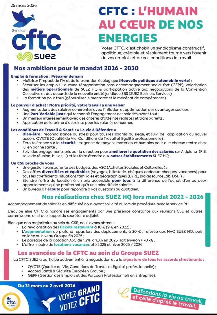 Déclaration de la CFTC SUEZ le 3 juillet 2025
